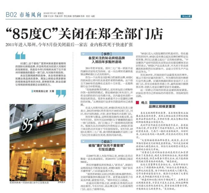 在85度C退出郑州市场时,内参君曾向品牌内部人士打探原因,得到了一连串的“吐槽”。在他们看来,品牌折戟郑州和选址不力有很大关系。
