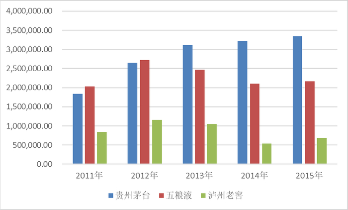 在这一时期(2012年-2014年),茅五泸的战略方向大体上是一致的,都是维持价格及维护品牌形象,然而体现在业绩上的是,茅台的业绩保持正向增长,泸州老窖和五粮液却深陷泥潭。