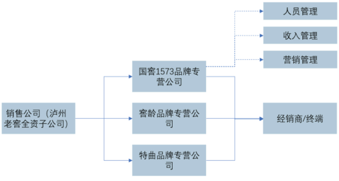 2015年,老窖将柒泉模式改革为品牌专营模式,设立国窖、窖龄、特曲三个品牌专营公司,各地由子公司管控当地市场,同时大幅增加厂商销售人员。渠道方面,则是精简营销层级,只设一级经销商、团购商及终端。