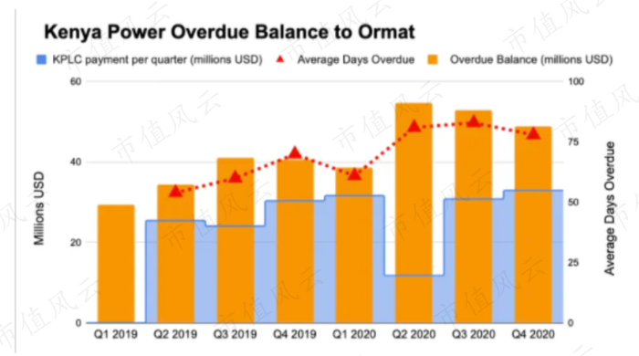 2019年第一季度,奥玛特开始报告肯尼亚电力公司的逾期现象。自首次披露以来,欠款余额一直在显著增加,肯尼亚电力公司拖欠欠款的平均天数也在增加。