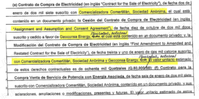 根据奥玛特在危地马拉提交的2015年的文件显示,Comertitlan在2012年首次签署了对Geoconsa的权利,然后在2014年修改了协议: