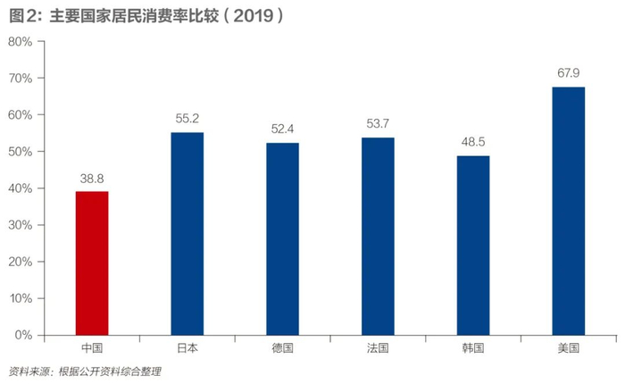 今年的《政府工作报告》提出,要稳步提高消费能力,改善消费环境,让居民能消费、愿消费,以促进民生改善和经济发展。然而,2019年,中国居民消费率为38.8%,距离美国、德国、法国、日本等发达国家50%以上的居民消费率仍有一定距离。居民消费率偏低仍是畅通国内大循环的堵点。
