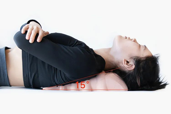 15°的设计正好符合咱们颈椎的正常弧度,躺在小龙虾上的时候对颈椎起到一个温和的牵引作用。