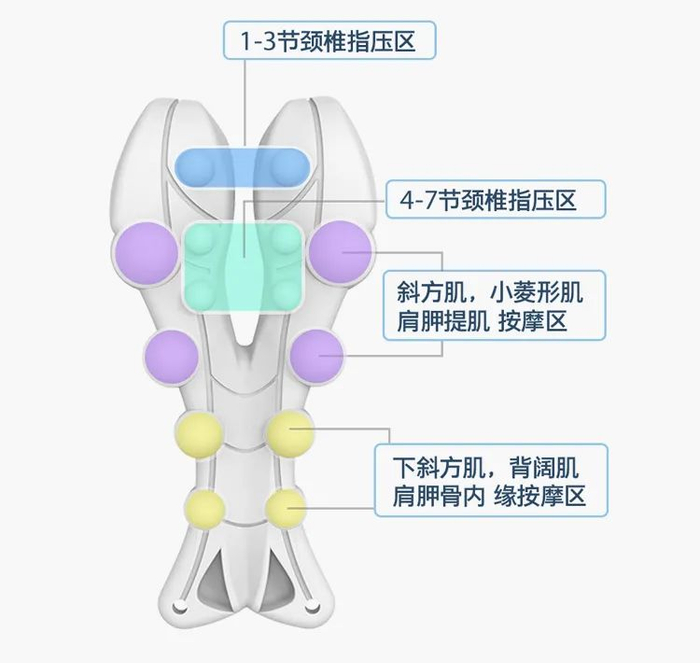 totonut小龙虾的分区设计除了正好贴合咱们整个颈椎,同时高强度指压点+温和按摩柱又能放松背部肌肉。
