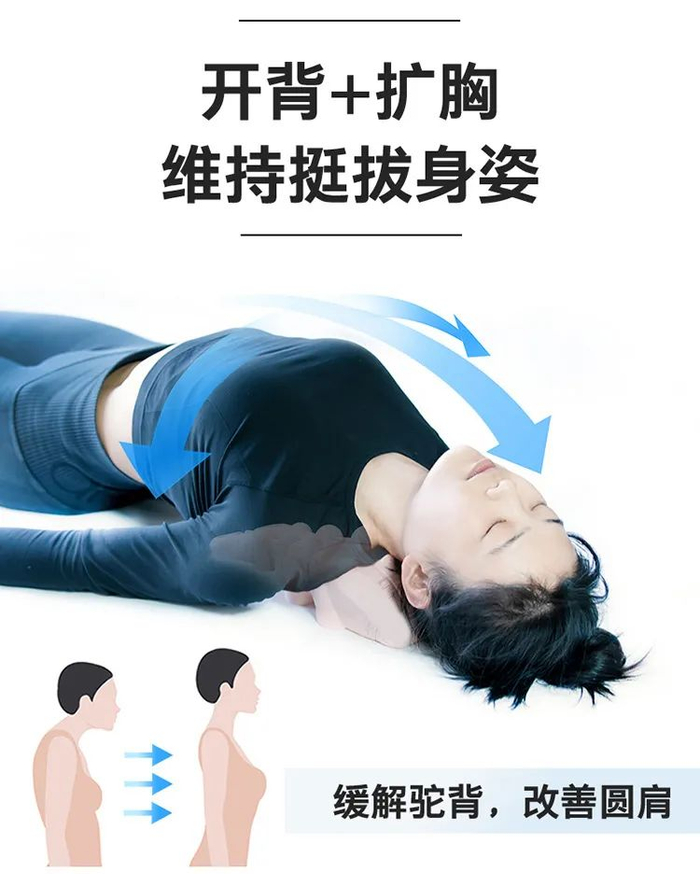 整个身体躺上,颈椎、斜方肌都能照顾到,相当于同时按摩了颈椎和僵硬的背部肌肉,整个背都放松了。