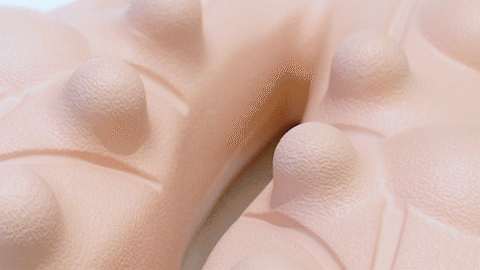 这也是为什么,躺在小龙虾上时,会明显感到高强度指压区的按摩强度大于温和按摩区。