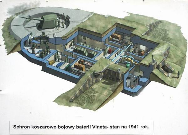 波兰军事画家绘制的旧维涅塔炮台复原图(图中只显示了一个炮位)