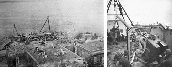 正在被日军拆卸的江阴要塞SK C/28炮台全景及拆卸中的火炮(《扬子江沿岸占领要塞兵备整理写真帖》)