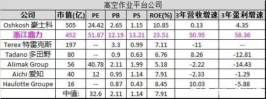 浙江鼎力两个跌停之前市值已经跑在第一位,虽然国际高空作业平台品牌排行第十,但无论是资产收益率、营收还是利润增速,都成为潜力巨大的优质龙头。