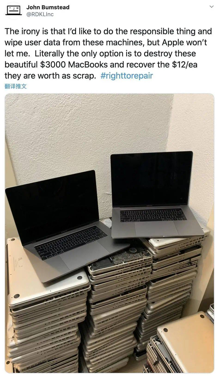 甚至还有联系不到原用户,导致回收商只能将这些价值几千元的二手 MacBook 拆解卖出,而第三方维修商也会因 T2 芯片的硬件限制,无法对产品进行深层次的拆解修理。