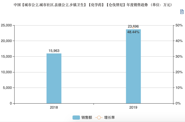因此,仑伐替尼在国内市场的发展情况很好,据米内网数据库显示,仑伐替尼在国内的市场规模从2018年的15963万增长至 2019年的23696万,增长率48.44%。