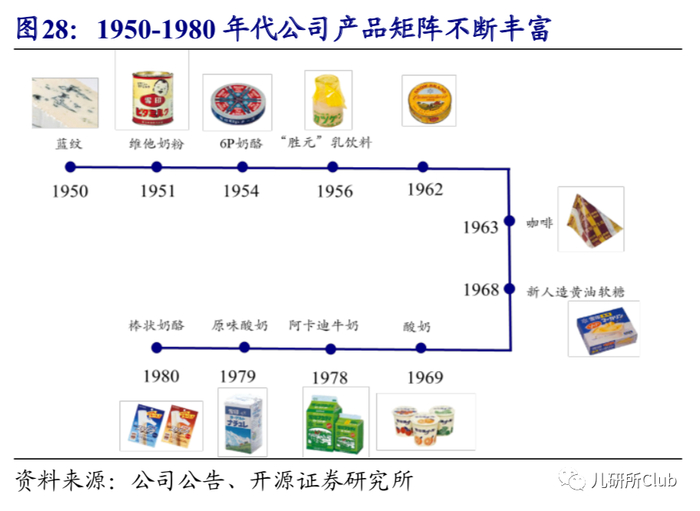 1950-1980年间雪印共计进行11 次大规模增资,资本金在1975 年增加到了100亿日元,得到资本助力后公司分别从生产效率、产能建设、产品研发等多方面发力。