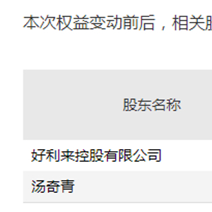 上述交易完成后,好利来控股持股比例从11%下降至5.53%,而汤奇青持股比例从0上升至5.47%。