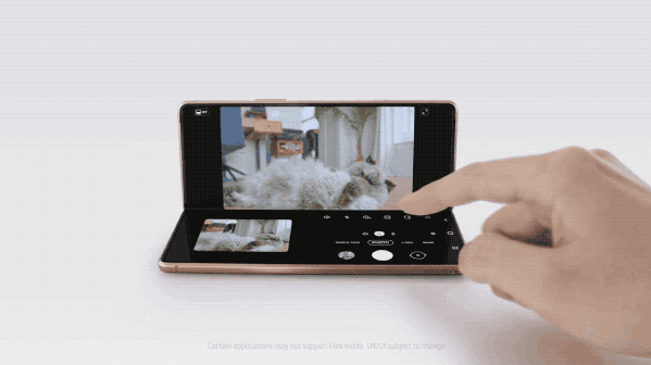更重要的是,凭借凸轮结构,三星Galaxy Z Fold2 5G还支持打多角度旋停折叠技术,可以在75°-115°之间实现多角度旋停,并支持全新的自适应分屏模式,在拍照、观影时带来前所未有的折叠屏交互体验。