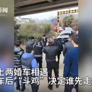 前段时间,网上有个热门话题。四川遂宁两对新人同时接亲,在村口公路上“狭路相逢”。双方都不想错过良辰吉时,为了决定谁先过,两位新郎决定下车“比武”。当然俩人没有拳脚相加,而是用小时候都玩过的“斗鸡游戏”,谁赢了谁先走。在一团和气和互相祝福中,两对新人顺利接亲回家。