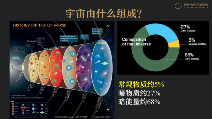 所以,2005年Science提出这一系列问题时,对我们整个世界科学研究的结构,进行了非常具有前瞻性的科学规划。我其实是个特别喜欢剧透的人,所以我先剧透一下,我们的宇宙是由什么组成。