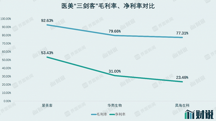 对比三家公司,可以发现爱美客在毛利率与净利率指标上明显领先。昊海生科与华熙生物的毛利率均接近80%,昊海生科的净利率水平表现相对最差。