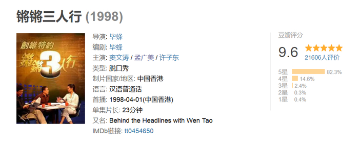 如果曾经是凤凰卫视《锵锵三人行》的观众,想必对窦文涛、周轶君、许子东等人都不会觉得陌生。《锵锵三人行》是窦文涛主持的一档谈话类节目,每期基本是邀请两个嘉宾,一起对各种热点事件发表看法,不避尺度、畅所欲言,既轻松有趣又鞭辟入里。从1998年开播至2017年节目停播,《锵锵三人行》是华语电视史上寿命最长的谈话类节目,“数千期的节目完全可作为中国社会史材料去研究”。