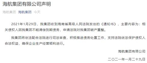 一直以来,在大众的印象中,破产都是企业的“专利”。/ 海航破产重整声明