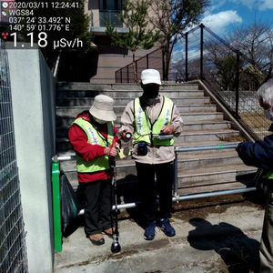 2020年3月11日,中村顺和同伴在福岛测量辐射量。受访者供图