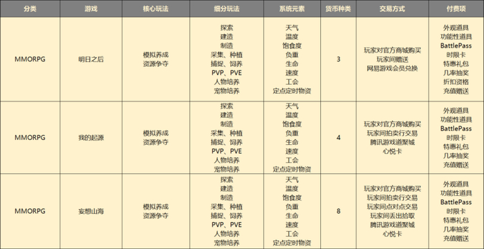 在三款生存类开放世界手游里,《明日之后》《我的起源》《妄想山海》分别在2018、2019、2021年上线,可以基本说明这类开放世界手游的变化。