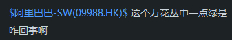 也难怪这位牛友嘲讽阿里真是“一枝独秀啊!”看了看上面的行情图,阿里是真的有点吸引眼球。