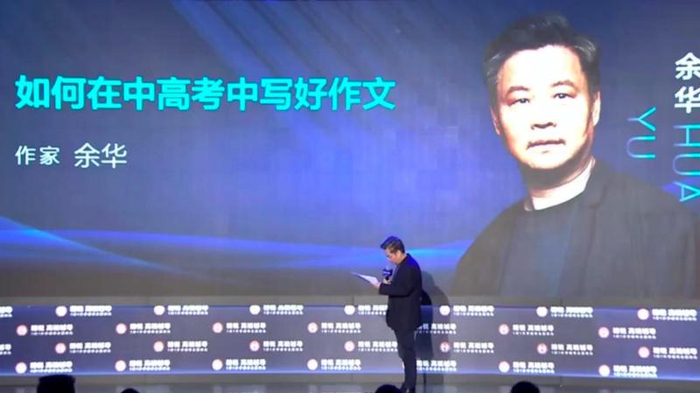 本次余华走红的起始是一张截图。画面中可以见到余华站在舞台上侧身对着观众,像是正在仔细查看自己手上的讲稿,硕大的舞台背景显示,余华要讲的题目是《如何在中高考中写好作文》。已有信息显示,这是国内某知名教育机构举办的一场名叫“中高考冲刺——四大专家献计2021中高考的高端辅导家长会”。余华就是“四大专家”之一,专家中还包括了樊登读书会的创始人樊登等。