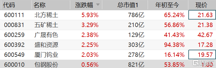北方稀土(600111.SH)拉升涨近6% 大幅上调3月轻稀土挂牌价