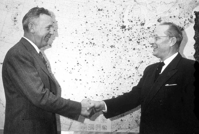 ▲挪威工程师克里斯蒂安·奥古斯特·约翰森(Christian August Johanse)从 Ex-Cell-O 的 George Scott 手上接下纯乐® 的全部使用权. 图片来自:Elopak