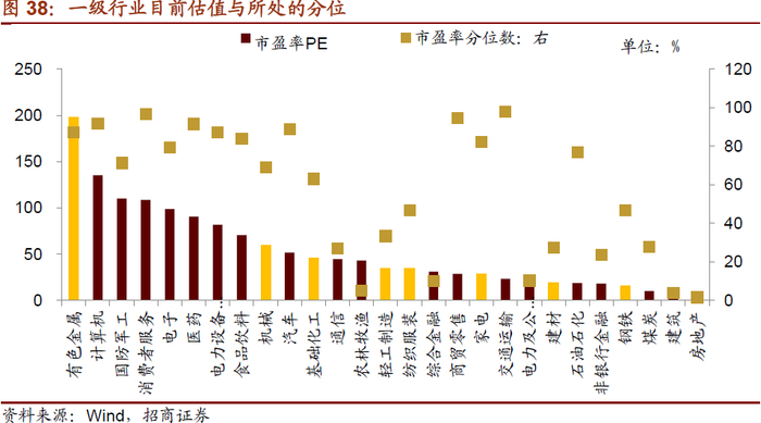 地产后周期的相关行业目前所处的估值相对较低。地产后周期相关的中信一级行业有色金属、机械、基础化工、轻工制造、纺织服装、家电、建材、钢铁等目前建材估值19.47处于历史27.43%分位,家电估值28.61处于历史82.28%分位,纺织服装估值34.47处于历史46.64%分位,轻工制造目前估值34.89,处于历史33.34%分位,基础化工目前估值46.01处于历史63.03%分位,目前具有较高的性价比。