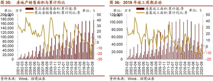 2016年中期房屋销售面积进入新一轮的高点,随后在2019年中期房屋竣工开始回暖,单月竣工面积同比增速持续回升,并在2019年底累计同比增速转正为2.6%。2020年受疫情影响,停工停产导致地产竣工周期中断,今年竣工周期预计更加强烈。