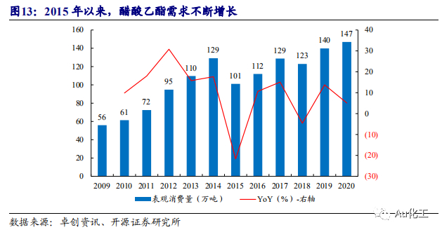 2.1.2 醋酸乙酯需求逐渐上升,产能扩张缓慢