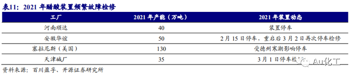 醋酸装置频繁检修、醋酸供给紧张或为未来常态,有望支撑醋酸价格上涨
