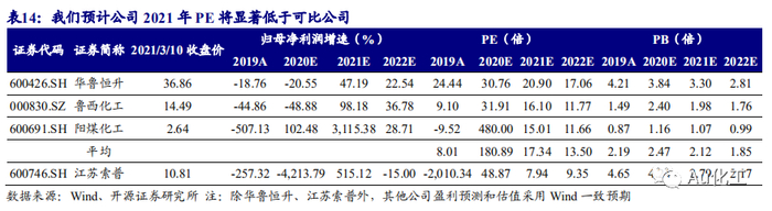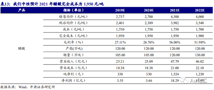 醋酸业务:2021年下游PTA投产,带动醋酸需求增长,供给端,仅华谊集团50万吨醋酸新产能投产,供需错配,我们假设2021年、2022年的醋酸税前均价分别为4,500元/吨、4,000元/吨;