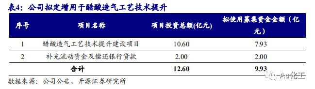 公司拟非公开发行A股股票募集资金用于醋酸造气工艺技术提升。2020年12月11日,公司发布非公开发行A股股票预案,拟向不超过35名的特定投资者,发行股票数量不超过3.15亿股,占发行前公司总股本不超过30%,募集资金总额不超过9.93亿元。募集资金将用于醋酸造气工艺技术提升建设项目和补充流动资金及偿还银行贷款项目。公司此次拟投资10.6亿元用于工艺改造,采用从镇江及周边化工企业回收的废活性炭、精馏残渣等危废而制成的有机合成浆以及兰炭、石油焦为原材料,生产具有高附加值的一氧化碳等产品,通过合理利用危废以创造循环经济效益,并最终达到生产节能降耗、产品降本增效之目的。另外公司将投资2亿元用于补充流动资金和偿还银行贷款,从而优化公司资本结构,减少公司财务费用。公司生产醋酸的核心原材料为一氧化碳及甲醇,若该项目成功实施,则能够为公司提供3.2亿Nm3的一氧化碳年产能以及15.23万吨的副产品粗甲醇年产能,可减少公司对核心原材料的外购,在一定程度上缓解公司此前合成气产能不足的问题。