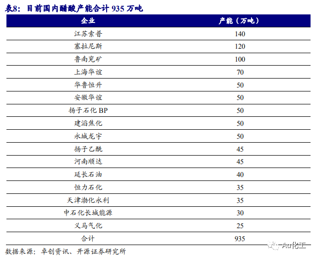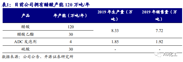 公司拥有醋酸产能120万吨/年,为醋酸行业上市龙头