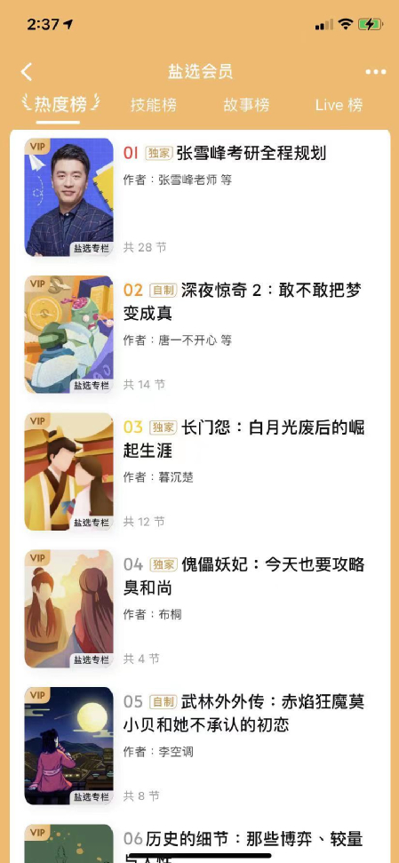 盐选热度榜前20位中,有17个栏目为虚构或非虚构的故事栏目。