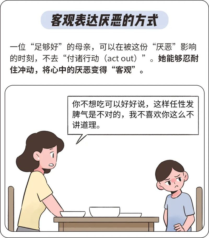 更重要的是,在被客观厌恶的过程中,孩子还会初步习得“母亲和我是两个人,并不总是一样的”这一事实。