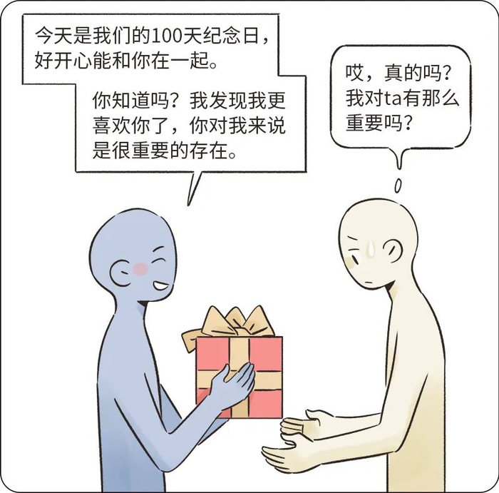 当一个人处在这样自我关注和利益导向的心理状态中时,ta没有能力感受、共情到对方真实、深刻的爱。