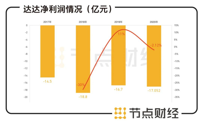 财报显示,去年四季度,非美国通用会计准则下(Non-GAAP),达达集团净亏损为4.196亿元,上年同期净亏损为4.781亿元,同比小幅收窄;2020财年,达达集团的净亏损为17.052亿元,相比之下2019财年净亏损为16.698亿元,小幅增长;非美国通用会计准则下(Non-GAAP),达达集团的净亏损虽然有所收窄,但依然高达11.68亿元,上年同期的亏损额为14.2亿元。亏损很大程度上是由于成本高企。