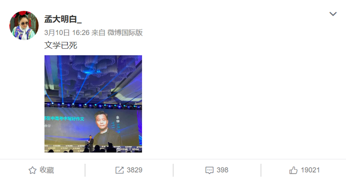 照片刚曝光,就在微博和朋友圈引发了众人热议,还有博主语出惊人,称余华此举说明“文学已死”。背后的逻辑不难理解:堂堂大作家都来教作文,可见文学创作的衰微。