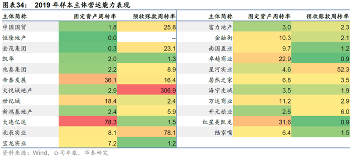 营运能力反映企业的经营效率,较快的周转率有利于企业实现现金流的较快回笼,为后续开发运营提供资金支持。对于商业地产企业而言,其持有的商业物业多数计入固定资产科目,因此用固定资产周转率衡量企业从开发到实现营业收入的效率,用预收账款周转率衡量企业从获得预收租金或预收款到实现现金流入的效率。样本房企之间的固定资产周转率和预收账款周转率差异较大,一个重要原因是以不同经营模式和业态为主的企业在周转率表现不同,例如大连亿达开发的项目以出售为主,因此固定资产周转率偏高;此外,在高盈利和快周转之间的策略选择也对企业周转率影响较大。较高的周转率通常反映了较高的运营效率,但也存在例外,例如有些企业预收账款周转率偏高主要由于报告期内平均预收账款规模较小。