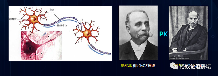 一派是以意大利的高尔基为代表的神经网状理论,认为这些突起彼此相通,构成一张大网;