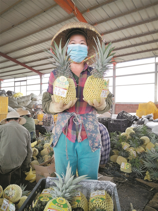 实际上,徐闻菠萝在从前曾多次遭受滞销冷遇。直到去年疫情期间,拼多多与羊城晚报共同主办的助农直播中,时任广东省湛江市徐闻县县长的吴康秀走进助农直播间,切菠萝、吃菠萝,倾情为徐闻菠萝代言,徐闻菠萝才一下子打开了电商销售的新天地。