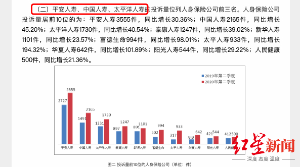 中国银保监会消费者权益保护局发布的《关于2020年第二季度保险消费投诉情况的通报》《关于2020年第三季度保险消费投诉情况的通报》,中国人寿的被投诉量均位列人身保险公司的前三。
