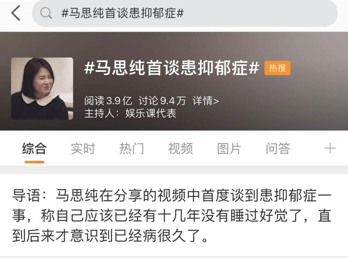 原标题:马思纯公开抑郁让人心疼,抑郁症已成最大的隐形杀手