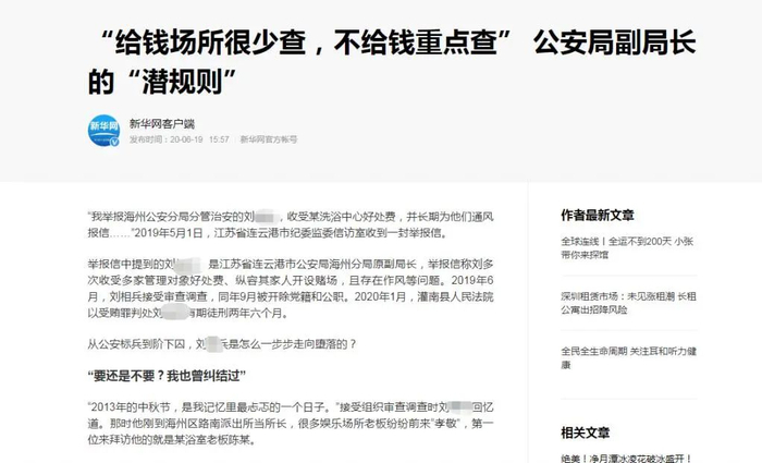 潇湘晨报记者比对公开信息发现,此案中的连云港市公安局海州分局路南派出所所长,后升任连云港市公安局海州分局副局长的刘某乙已于 2019 年落马。