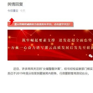 江苏灌云回应女辅警敲诈案:7名公职人员被处分