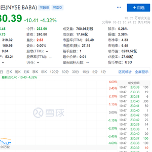 3月12日美股开盘后,阿里跌幅超过3%。