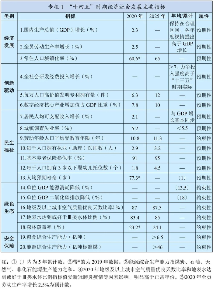 “十四五”时期经济社会发展主要目标